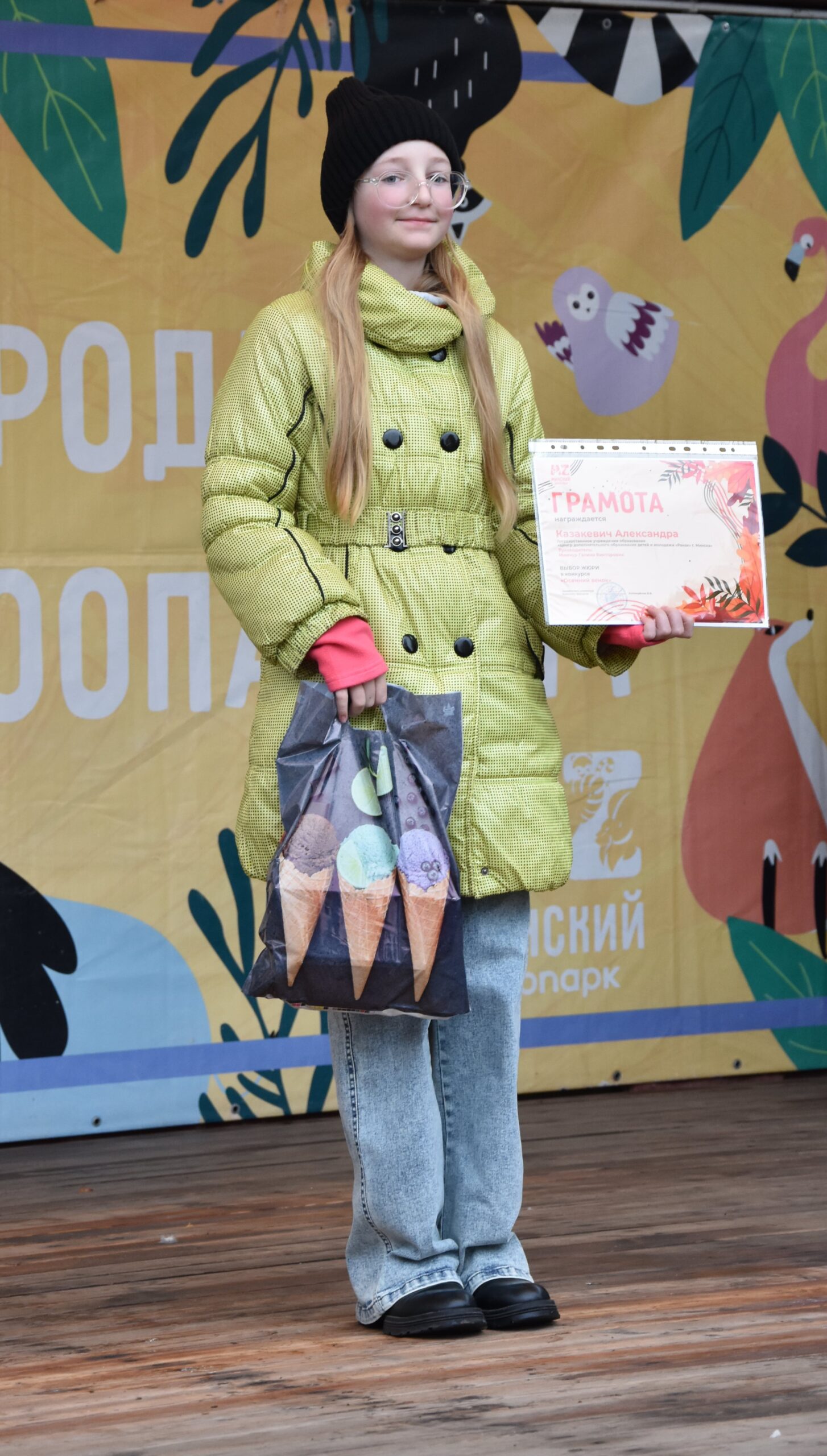 В минувшую субботу мы подвели итоги конкурса “Осенний венок”. Подарком для всех участников стал вход на территорию зоопарка по пригласительному билету. Выставка работ была организована рядом с главной аллее зоопарка, где каждый посетитель мог оценить оригинальность и креативность работ наших участников. Подведение итогов и награждение победителей проходило на сцене зоопарка. Музыкальный подарок и хорошее настроение всем участником подарили ребята танцевальной студии “FARS”.